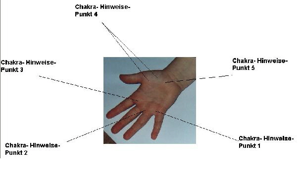 Ich habe die Handpunkte hier nicht Chakren genannt, sondern Chakren-Hinweispunkte, weil der erste Hinweispunkt mit der
