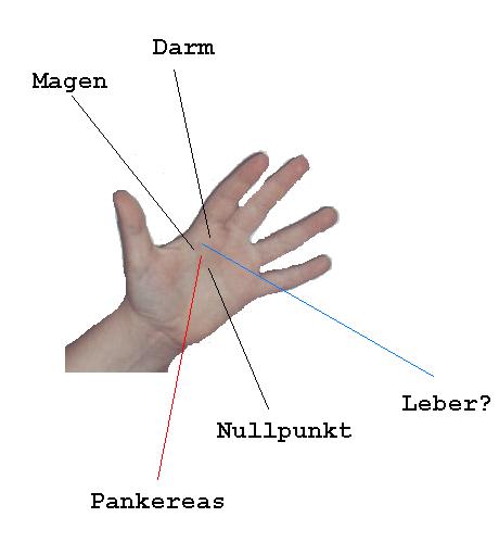 Der Pankreaspunkt liegt unter dem Magenpunkt. Dieser Punkt ist bei der Zuckerkrankheit immer zu finden. Eine